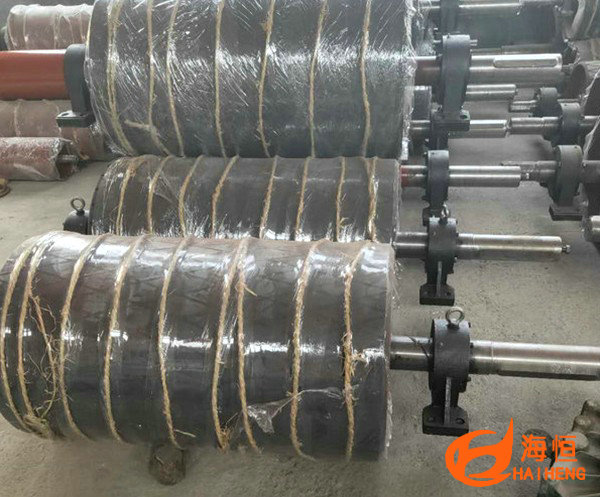 傳動(dòng)滾筒表面可以裸露光鋼面,也可以附膠,如:人字形和菱形花紋橡膠覆面;小功率、小帶寬及環(huán)境干燥時(shí)可采用裸露光鋼面;人字形花紋膠面摩擦系數(shù)大,防滑性和排水性好,但有方向性;菱形膠面用于雙向運(yùn)行的皮帶輸送機(jī)。